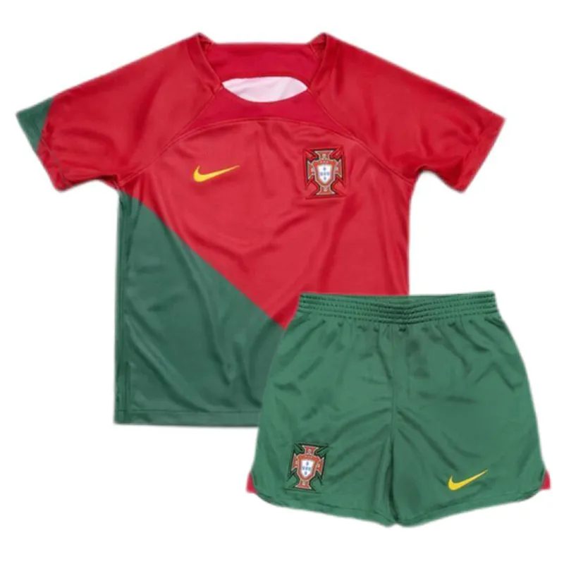 2022 Portugal World Cup Home Soccer Kids Kit Jersey+Shorts